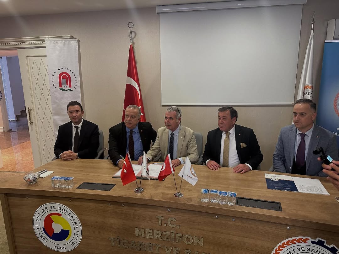 Türkiye Odalar ve Borsalar Birliği (TOBB) ile Yükseköğretim Kurulu (YÖK) arasında imzalanan “Meslek Yüksekokulları Eğitim İş Birliği Protokolü” kapsamında, Merzifon Ticaret ve Sanayi Odası (TSO) ile Amasya Üniversitesi arasında gerçekleştirilecek iş birliklerinin planlandığı toplantı, Amasya Üniversitesi Rektörü Prof. Dr. Ahmet Hakkı TURABİ’nin katılımlarıyla Merzifon TSO toplantı salonunda düzenlendi.